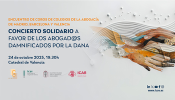 08 octubre | Los coros de los Colegios de la Abogacía de Madrid, Barcelona y Valencia se unen en un concierto solidario por los abogados afectados por la DANA