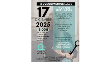 El Casal de la Pau entrega sus “Reconocimientos Llave 2025” el próximo 17 de diciembre en el ICAV