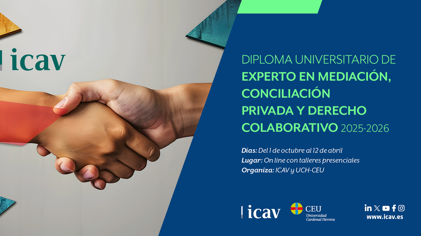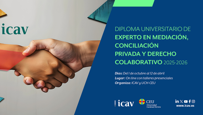 La Universidad CEU Cardenal Herrera y el ICAV han puesto en marcha el Diploma Universitario de Experto en Mediación y Conciliación. Se trata de una formación especializada que combina teoría y práctica para capacitar a profesionales en la gestión de conflictos desde un enfoque integral.