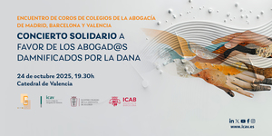 El próximo 24 de octubre, a las 19:30 horas en la Catedral de Valencia, se celebrará un encuentro intercolegial de coros solidario en el que se pretenden recaudar fondos para la Fundación D. Eduardo Calabuig-ICAV en beneficio de las personas colegiadas damnificadas.