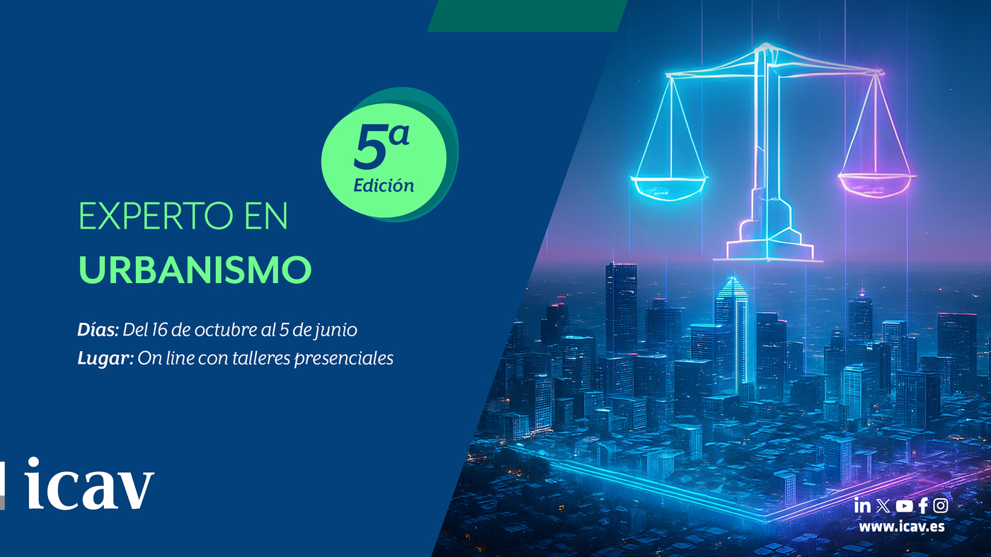 El ICAV lanza la quinta edición del Curso de Experto en Urbanismo, que comenzará el próximo 16 de octubre. Se trata de una formación destinada a juristas y profesionales interesados en adquirir una visión completa, tanto jurídica como técnica, del urbanismo estatal y autonómico en la Comunitat Valenciana. El programa abordará cuestiones clave de planificación, gestión, ejecución y disciplina urbanística.