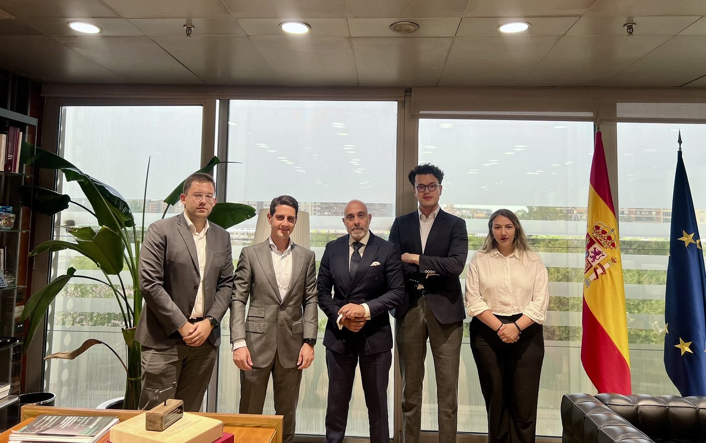 El decano del Ilustre Colegio de Abogados de Valencia (ICAV), José Soriano, se ha reunido esta tarde con la Comisión de la Agrupación de la Joven Abogacía del ICAV (AJA). En esta reunión ha estado presente Santiago Tórtola, recientemente nombrado presidente de la Agrupación de la Joven Abogacía del ICAV (AJA), acompañado por varios miembros de su nueva Comisión Ejecutiva: Juan Delgado vocal 1º, María José Rincón vocal 7ª y Radu Hirsan vocal 11ª. El encuentro ha servido para analizar los principales retos y necesidades de la abogacía joven, así como para reforzar los lazos de colaboración entre el Colegio y la agrupación. Entre los temas tratados destacaron la formación continua y el papel de la AJA en la defensa de los intereses de las nuevas generaciones de abogados y abogadas. La Agrupación de la Joven Abogacía (AJA) es un órgano interno del ICAV que agrupa a los abogados jóvenes colegiados para defender sus intereses, promover su participación y ofrecerles formación, recursos y un espacio de encuentro profesional. Su objetivo principal es representar a los abogados más jóvenes y facilitar su desarrollo profesional dentro del Colegio y en el ámbito legal. Tras la reunión, el decano ha presentado a los miembros de la nueva Comisión Ejecutiva de la AJA ante la Junta de Gobierno del ICAV, minutos antes de celebrarse la sesión periódica de la misma. Con este encuentro, el ICAV reafirma su compromiso con las nuevas generaciones de letrados y letradas, garantizando su integración en la vida colegial. De esta manera, asegura que sus voces estén presentes en las decisiones que marcarán el futuro de la profesión.