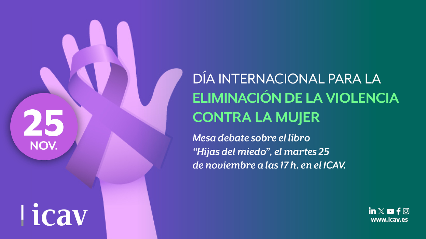 Con motivo del Día Internacional para la Eliminación de la Violencia contra la Mujer, se celebrará el próximo 25 de noviembre a las 17:00h en el ICAV una mesa redonda encabezada por Raquel Orantes, hija de Ana Orantes, la mujer cuyo asesinato en 1997 marcó un antes y un después en la lucha contra la violencia machista en España.