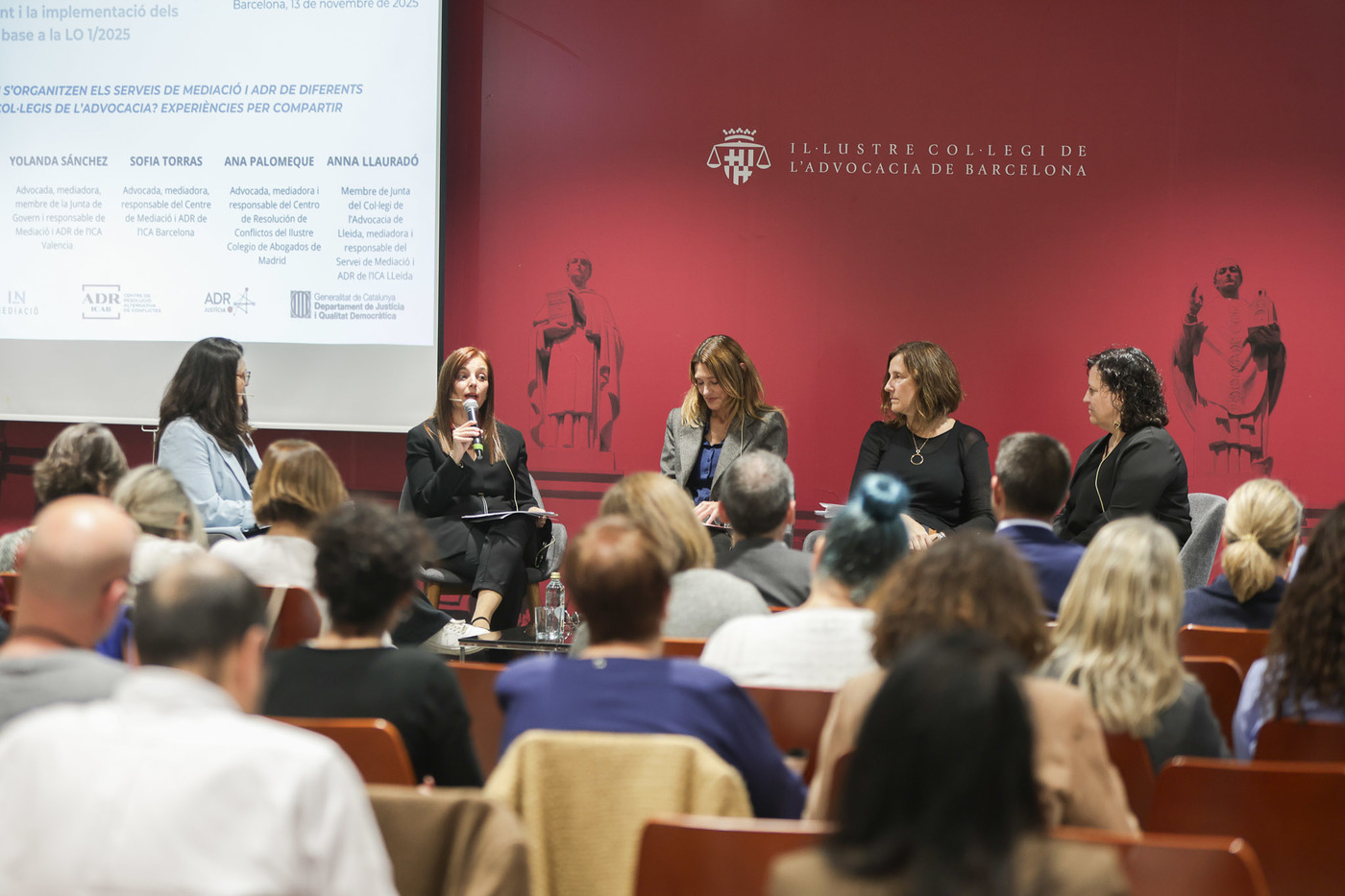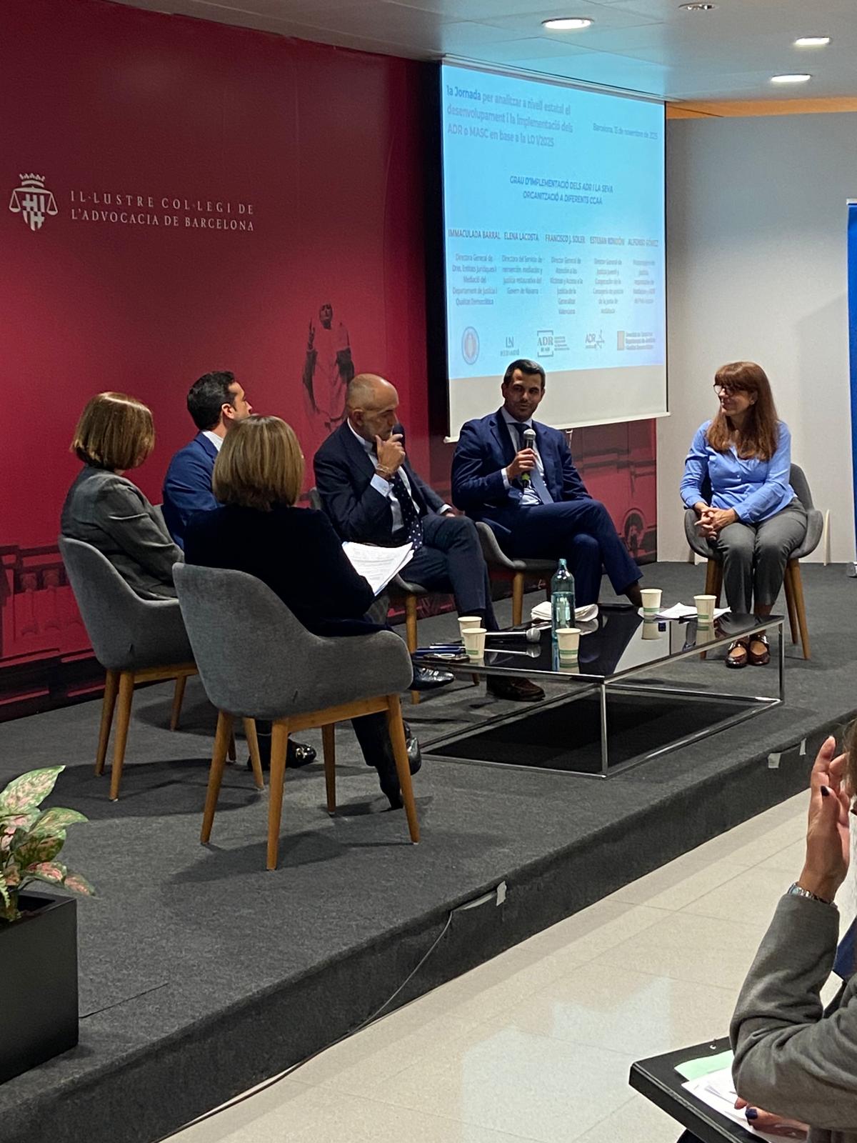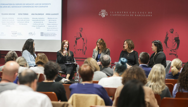 Moderada por Isabel Morales y con Susanna Espinosa como relatora, ambas miembros de la Comisión de Mediación del Consejo de la Abogacía Catalana, la mesa ha reunido también a Miguel Ángel Martínez, miembro de la Comisión MASC del Ilustre Colegio Provincial de la Abogacía de Alicante; Sofia Torras, responsable del Centro de Mediación y ADR del ICAB; Ana Palomeque, responsable del Centro de Resolución de Conflictos del Ilustre Colegio de la Abogacía de Madrid; y Anna Llauradó, responsable del Servicio de Mediación y ADR del Ilustre Colegio de la Abogacía de Lleida.