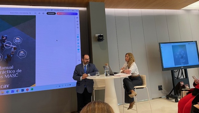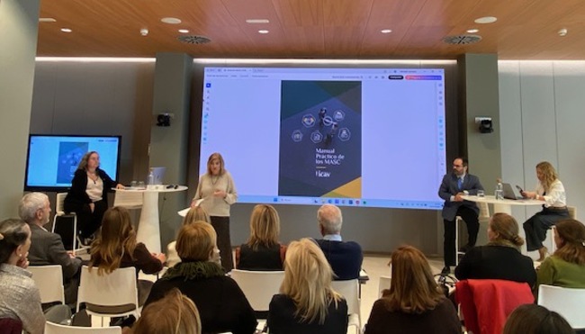 La Sección de Mediación-MASC del Ilustre Colegio de Abogados de Valencia (ICAV) ha celebrado esta mañana un Encuentro Profesional en el Hub del Banco Sabadell, una cita concebida para reforzar el diálogo entre especialistas, fomentar el aprendizaje colaborativo y promover el intercambio de experiencias en torno al desarrollo de los Métodos Adecuados de Solución de Conflictos (MASC). La jornada se ha abierto con la presentación del Manual Práctico de los MASC, una herramienta orientada a facilitar su aplicación en el ejercicio profesional. A continuación, se ha celebrado una mesa de debate centrada en la implementación de la Ley Orgánica 1/2025, en la que han intervenido Lorena Romans, abogada y referente nacional en Derecho Colaborativo; Javier Carceller, letrado de la Administración de Justicia del Juzgado de Primera Instancia nº 16 de Valencia; y Silvia Moya, abogada y vocal de la Sección de Derecho de Familia y Sucesiones del ICAV. Los ponentes han abordado los retos y oportunidades que plantea el nuevo marco normativo, así como su impacto en la práctica diaria. El acto ha contado con la presencia de Rebeca Lino, vicedecana de la Junta de Gobierno, y Trinidad Piquer, diputada 11.ª del Colegio, quienes han respaldado con su participación este punto de encuentro esencial para el análisis y la mejora continua de este ámbito jurídico. Iniciativas como esta evidencian el firme compromiso del ICAV con el intercambio de conocimiento, la actualización profesional y el análisis riguroso de la eficacia de las leyes vigentes.