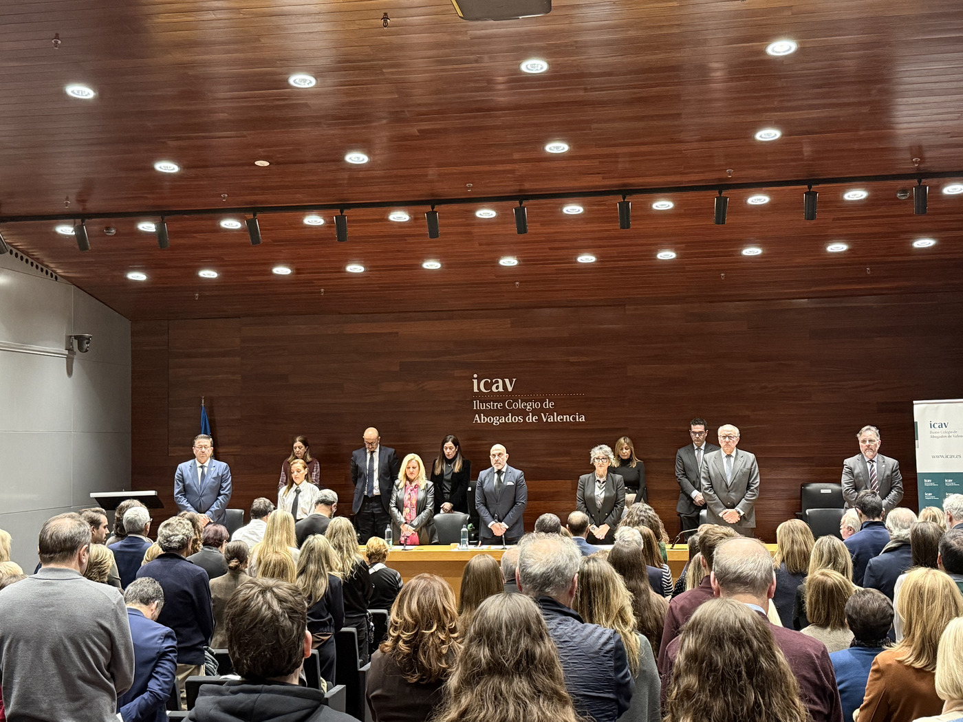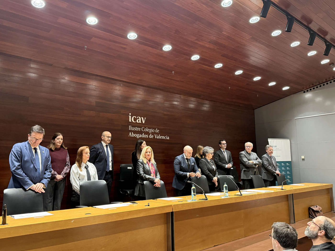 Tras un minuto de silencio Raquel Marco, secretaria de la Junta de Gobierno del ICAV, ha procedido a la lectura de los nombres de los 46 compañeros fallecidos, cuyas familias han recibido de manos del decano un diploma conmemorativo en recuerdo a su dedicación.
