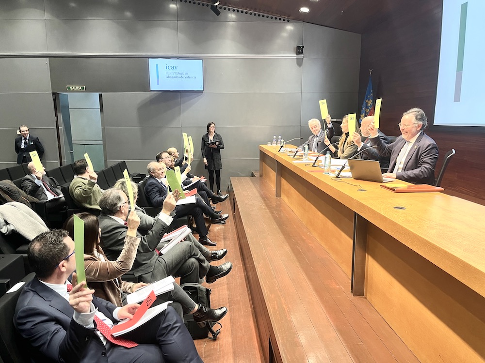La sesión, convocada por la Junta de Gobierno conforme al Estatuto del ICAV y al Estatuto General de la Abogacía Española, se ha desarrollado en el Salón de Actos del Colegio con la asistencia de los colegiados y colegiadas convocados.