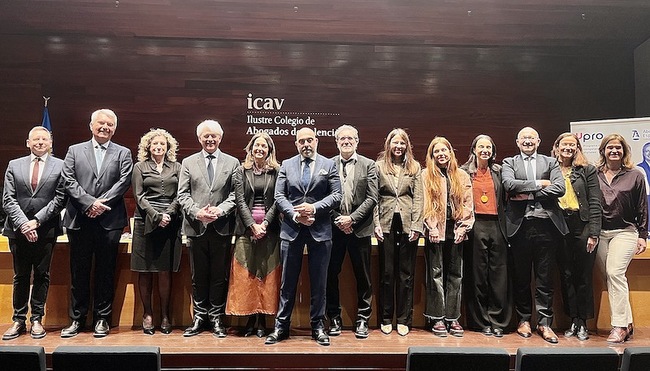 El acto ha reunido a una amplia representación institucional y profesional, con presencia del decano del ICAV, José Soriano, miembros de la Junta de Gobierno, antiguos decanos, representantes del Consejo General de la Abogacía Española, del ámbito universitario —incluidas distintas facultades de Derecho— y de la presidenta del Consejo Valenciano de Colegios de la Abogacía.